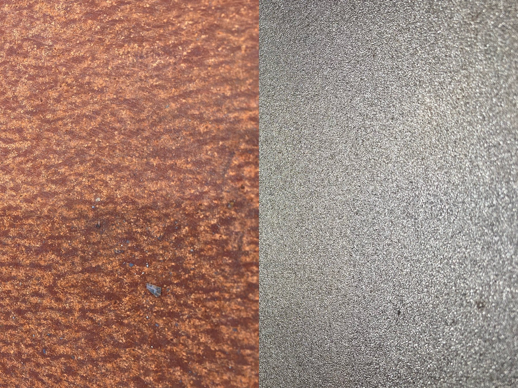 Notre degré de soin sur nos 2 grenailleuses est un SA 2.5, c’est-à-dire un décapage très soigné, avec élimination de toute forme de résidu. Etape ultime avant un décapage à blanc.