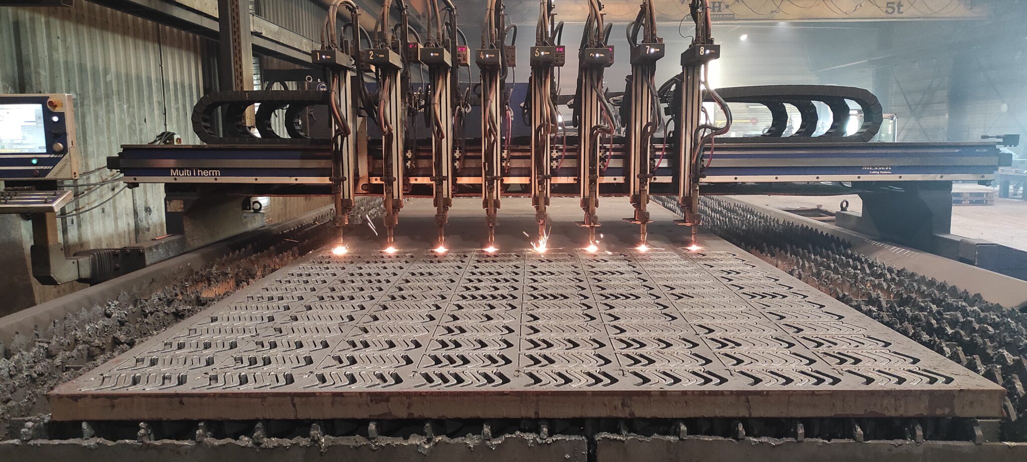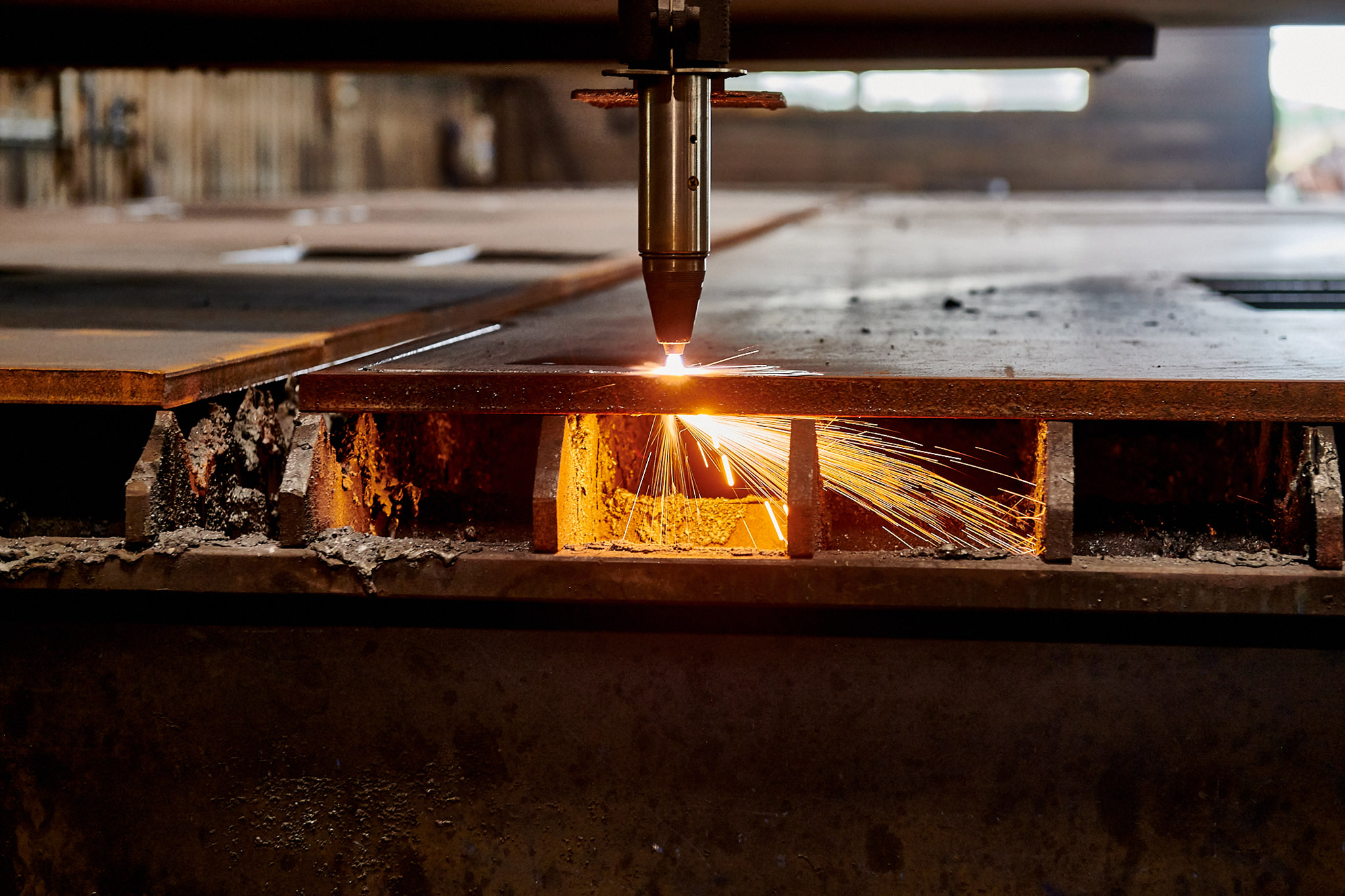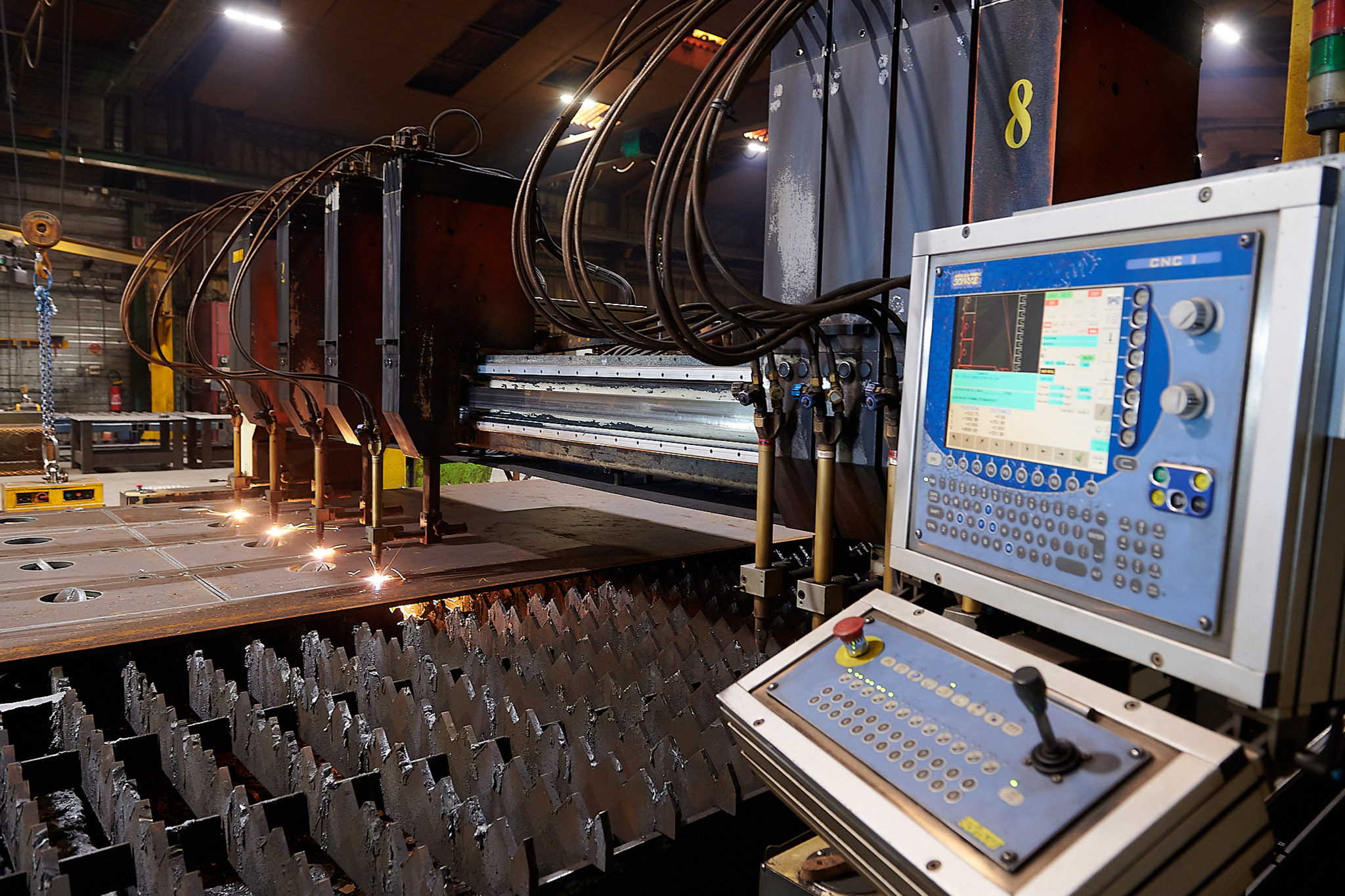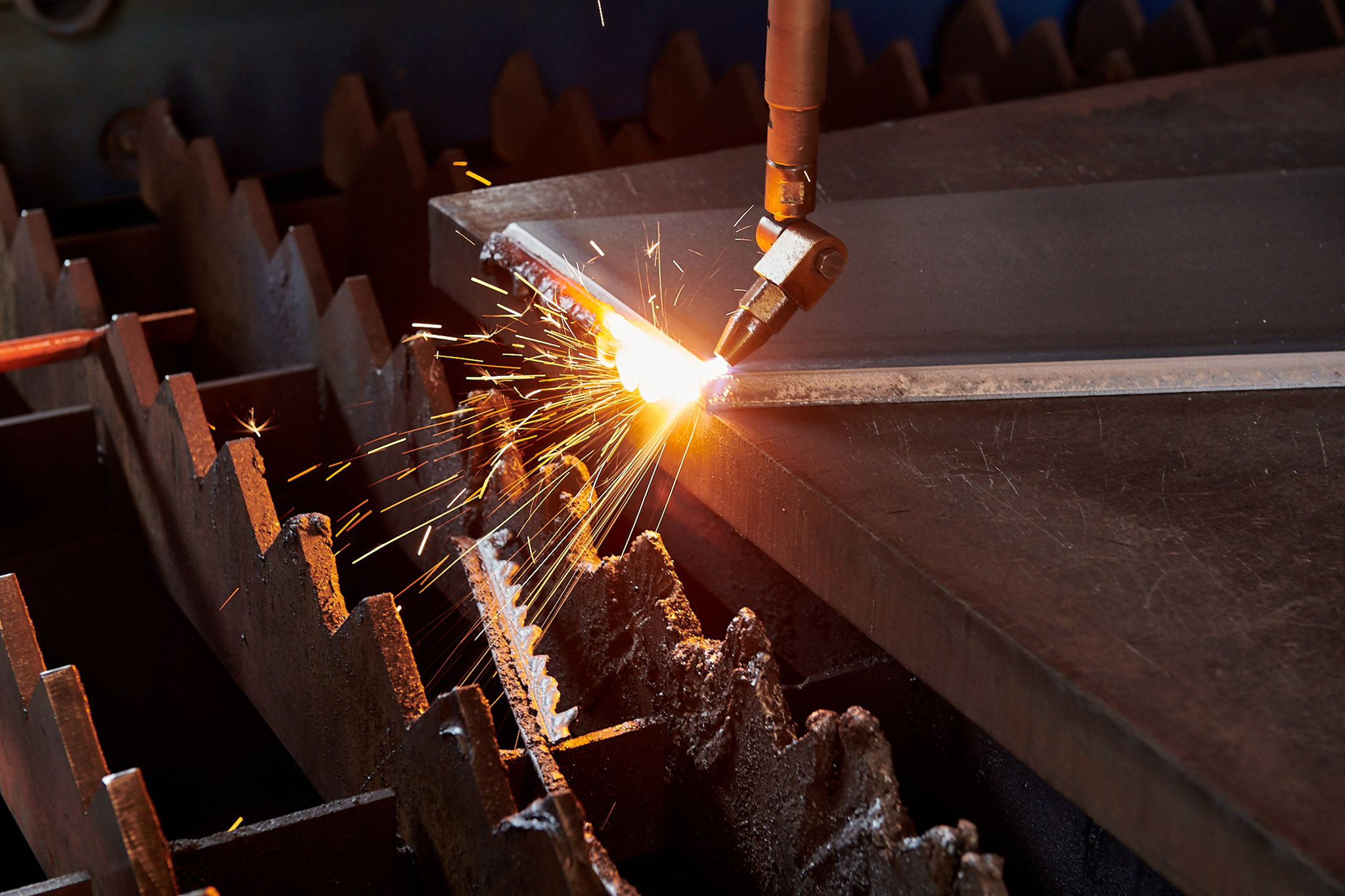 Pour les fortes épaisseurs (au-delà de 50mm), l’oxycoupage reste un des seuls procédés de découpe d’acier.